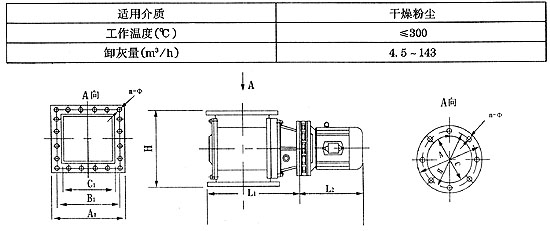 用途 該閥又名葉輪給料機、回轉(zhuǎn)下料器等,普遍適用于建材、冶金、化工、電力等部門作為各類除塵設備的卸料裝置及各種磨機、烘干機、料倉等設備的給卸料裝置。 結(jié)構(gòu)特點 該閥采用鋼板焊接結(jié)構(gòu)、葉片耐磨性好、葉片與傳動軸鋼性連接、結(jié)構(gòu)緊湊、工作可靠、輕便節(jié)能。 工作原理 該閥由閥體、傳動軸、葉片和減速器等組成,減速電機帶動軸和葉輪旋轉(zhuǎn),完成給卸料。 型號編制說明